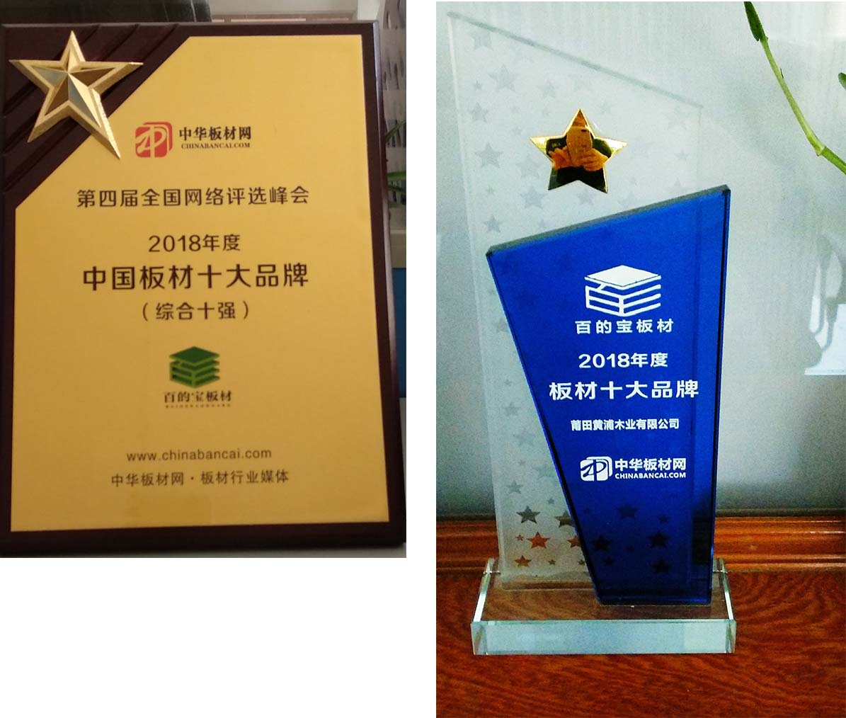 黃浦木業旗下“百的寶板材”,憑借在板材行業沉淀多年的口碑和實力,以專業的態度贏得了消費者的認可,更是在中華板材網舉辦的2018年中國板材網絡評選活動中一舉奪得“2018年中國板材品牌(綜合十強)”榮譽稱號!