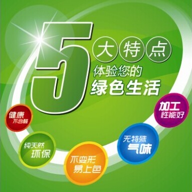 百的寶板材5大特點體驗您的綠色生活:加工性能好、無特殊氣味、不變形易上色、純天然環保、健康不含磷。