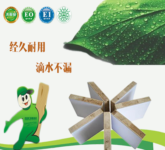 優勢二:百的寶無醛板材采用大豆無醛膠專利技術,無甲醛成分,不用考慮控制膠水用量來降低甲醛釋放,施膠量大,板材強度高,而且還具有防水功能。