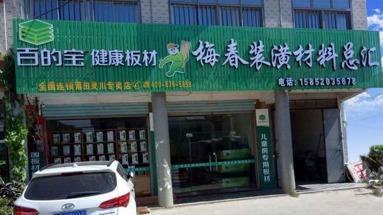 梅春裝潢材料總匯做為百的寶健康板材全國連鎖莆田靈川專賣店繼承了百的寶一貫大氣簡約的裝修風格。