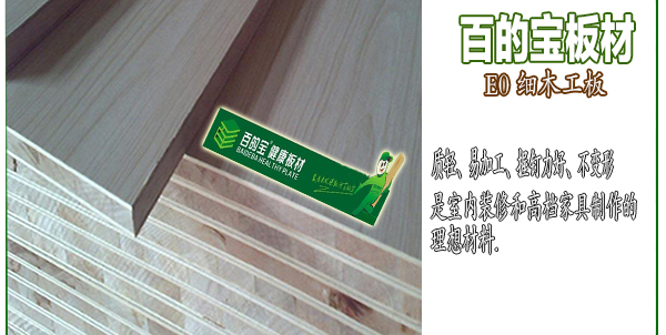 板材品牌百的寶為您總結一下:購買細木工板時,要看外觀、看質量、看甲醛含量、檢測板材的含水率、一次購買板材、挑選機拼板、選對品牌七個應注意的問題。您在購買細木工板時,希望上述這些基本知識能夠對您的選購提供幫助。