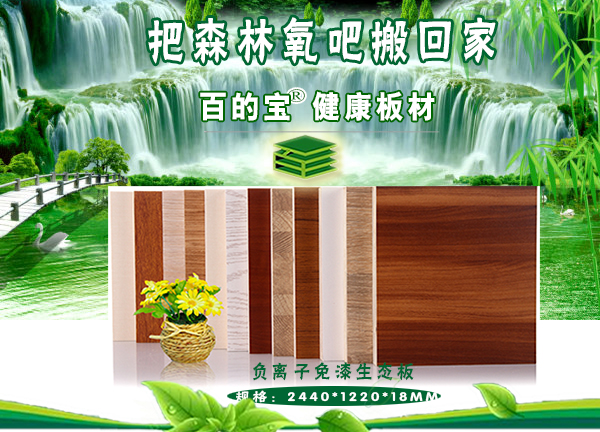 負離子對于人體來講有著太多的好處,市場需求空間大;百的寶板材苦心研究攻克技術難關,研發出向空氣中釋放負離子的健康板材,提高家居空氣負離子濃度,有效降解空氣中的有害物質,還中國人一個清新自然的居家環境。