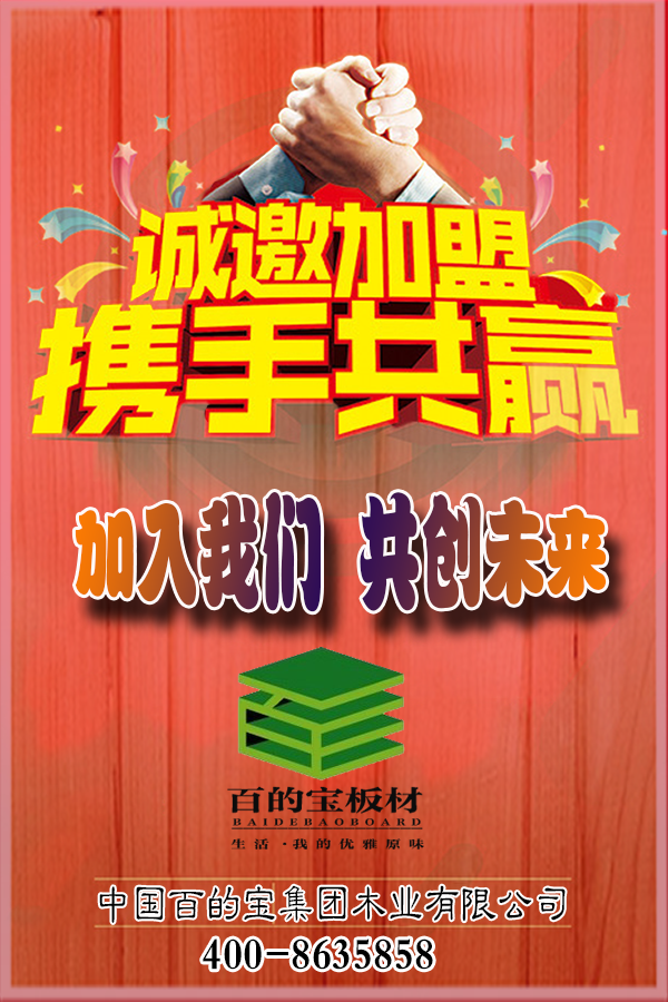 中國板材品牌百的寶無論是從資金上還是企業實力上都是板材加盟商可以依賴和依靠的后盾。不斷研發更安全環保的新產品,穩定的產品質量,完善的售后服務,確保板材加盟商和消費者的切身利益就是您選擇百的寶的理由。