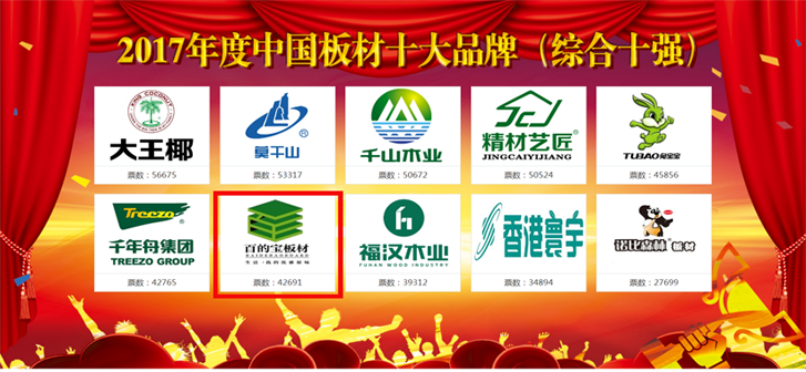 繼2015年和2016年榮獲中國(guó)板材品牌(綜合十強(qiáng))之后,百的寶板材梅開三度,今年再次將此殊榮收入囊中!